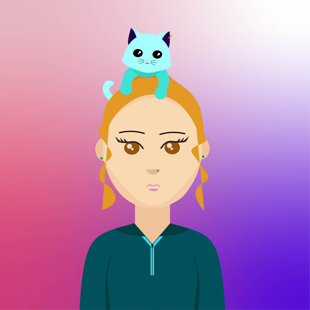 This assignment challenged me to represent myself using only simplified shapes. By breaking down facial features, hair, and clothing into minimal forms. I included my cat as a symbolic and playful element, reflecting an important part of who I am. The piece explores how identity can be expressed through reduction rather than realism.